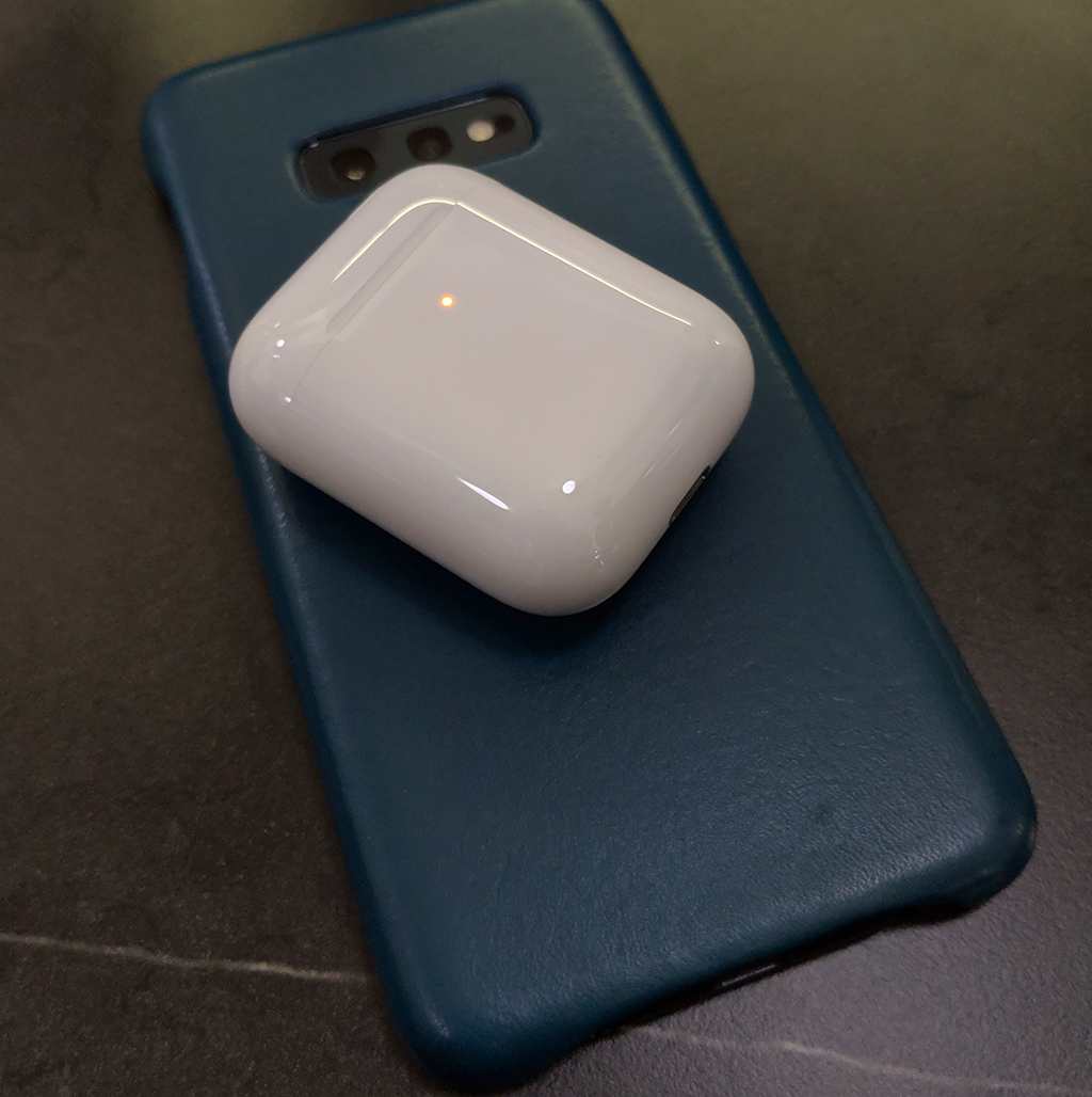 이번 에어팟 2 세대는 갤럭시 S10의 무선 충전 기능을 켜서 충전이 가능하다. 갤럭시 버즈처럼 충전해서 사용이 가능하여, 배터리가 필요하면 스마트폰의 배터리를 뺏어 사용이 가능하다.