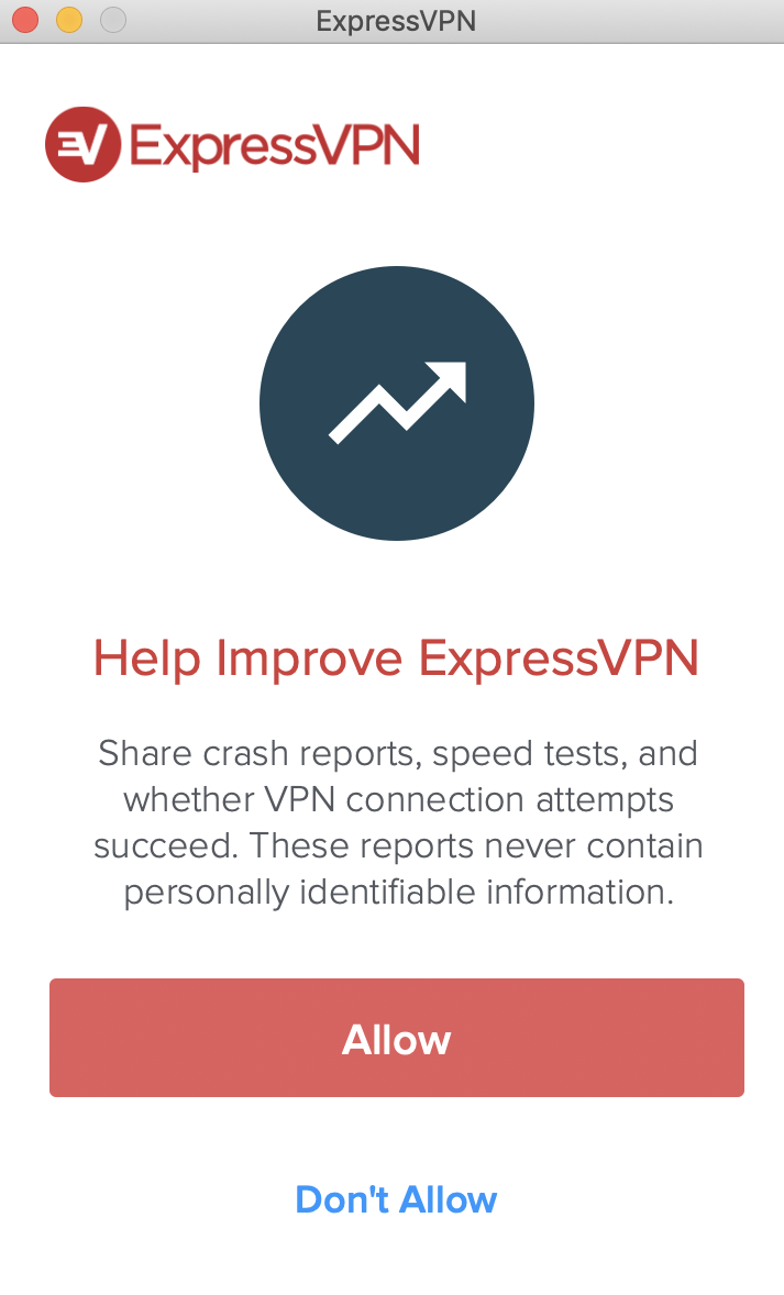 사용성 정보를 ExpressVPN에 제공하겠냐는 내용이다. 속도 체크나, 프로그램 사용 중 발생하는 오류 정보 등을 전달한다. 역시 원하지 않으면 비활성화할 수 있다.