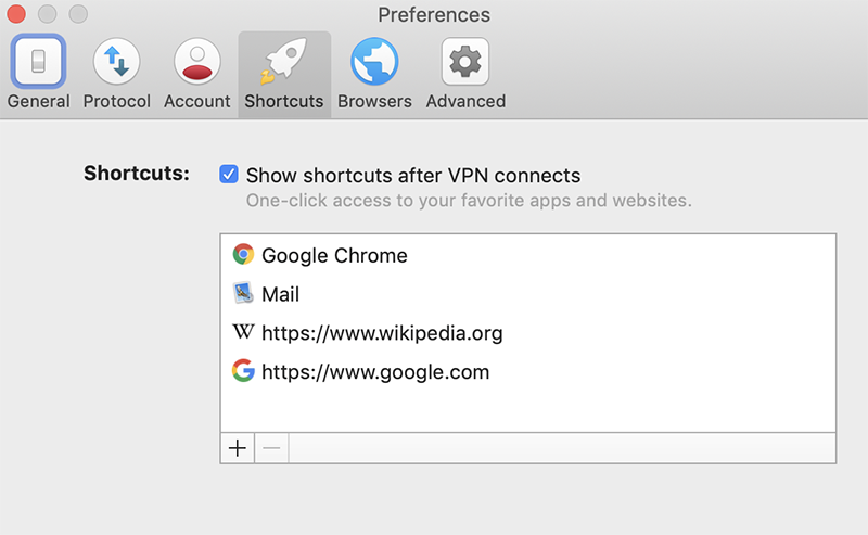 맥 부팅 시 프로그램 노출 여부와 마지막 접근 지점 자동 연결 등을 설정할 수 있다. 항상 해외 망을 사용해야 하는 경우 유용해 보인다.