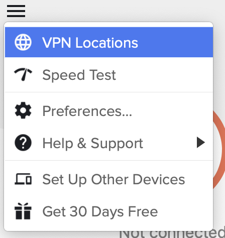 왼쪽 상단의 메뉴를 눌러주면 아래와 같이 VPN 위치를 변경하거나(이건 메인 화면에도 있다.)
