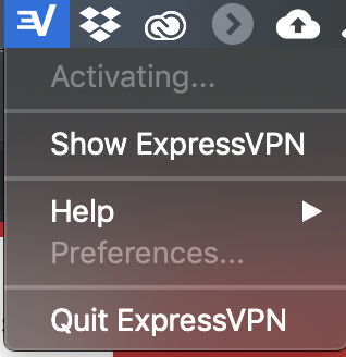 로그인하면 시계 옆에 아이콘이 하나 추가되고, 이 버튼을 통해 ExrpessVPN 화면을 노출하고, 연결하는 등의 작업을 할 수 있다.
