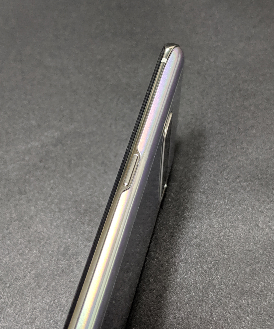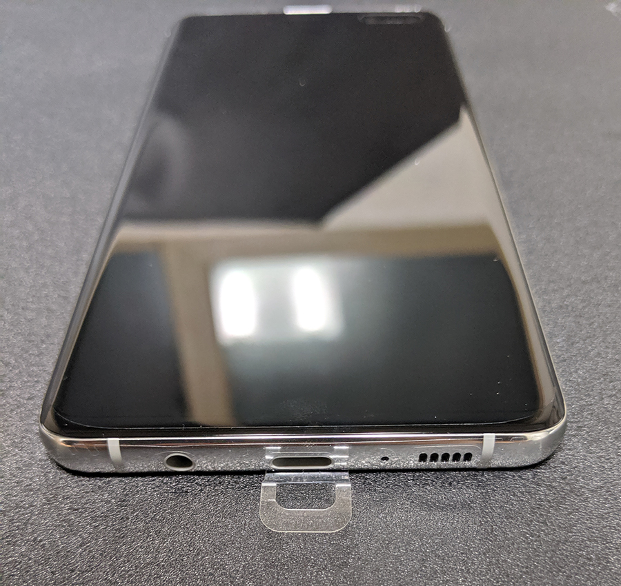 상단에는 유심을 담기 위한 트레이가 있다. 갤럭시 S10 5G에는 별도의 SD카드를 위한 공간은 존재하지 않는다. 기본 256/512 제품을 골라 사용할 수 있다. 필자의 경우 SD 카드 사용을 안 한 지 오래되어 필요치 않지만 용량이 모자란 사용자에겐 아쉬움이 분명 존재한다. SD 카드가 필요하다면 5G가 아닌 10+를 선택하길 바란다.