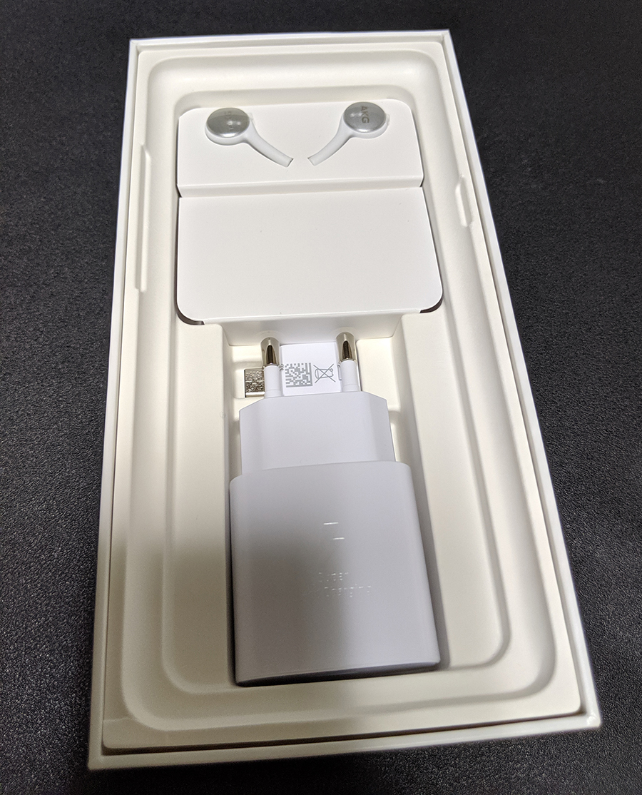 AKG 이어폰을 기본으로 제공하고, USB 5핀을 USB-C로 변경해주는 젠더 하나가 포함되어있고, 빠른 충전을 위한 충전기도 기본 제공하고 있다.
