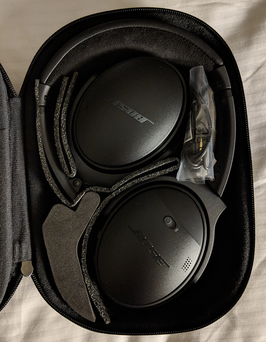 가지고 있는 3 번째 제품은 QC 35다. QC 35는 미국 갔을 때 보스 매장에서 직접 구입하여 월드워런티 적용을 받는다. 비행기 안에서는 최고의 제품이다. 갤럭시 S9+ 구매 시 받았던 헤드폰의 성능과 불편함에 구입하게 되었던 제품이다.