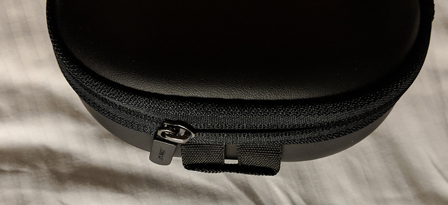 파우치 안에 케이블 2개가 들어있고, 헤드폰 본체를 포함하여 파우치를 채워주고 있다.