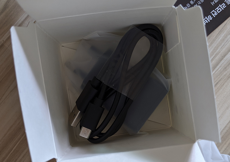 사용 설명서를 꺼내고 나면 케이블과 충전기가 함께 나온다. 필자의 경우 다중 충전기를 사용하다 보니 USB 케이블만 활용하고 있다.