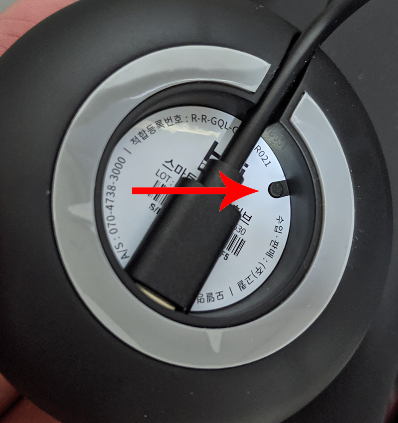 이 사진에는 없으나, 저 흰 라벨 측면에 보면 작은 버튼이 하나 있다. 최초 전원 연결 후 이 부분을 눌러줘야 기기가 동작하고, 블루투스 대기모드로 넘어간다.