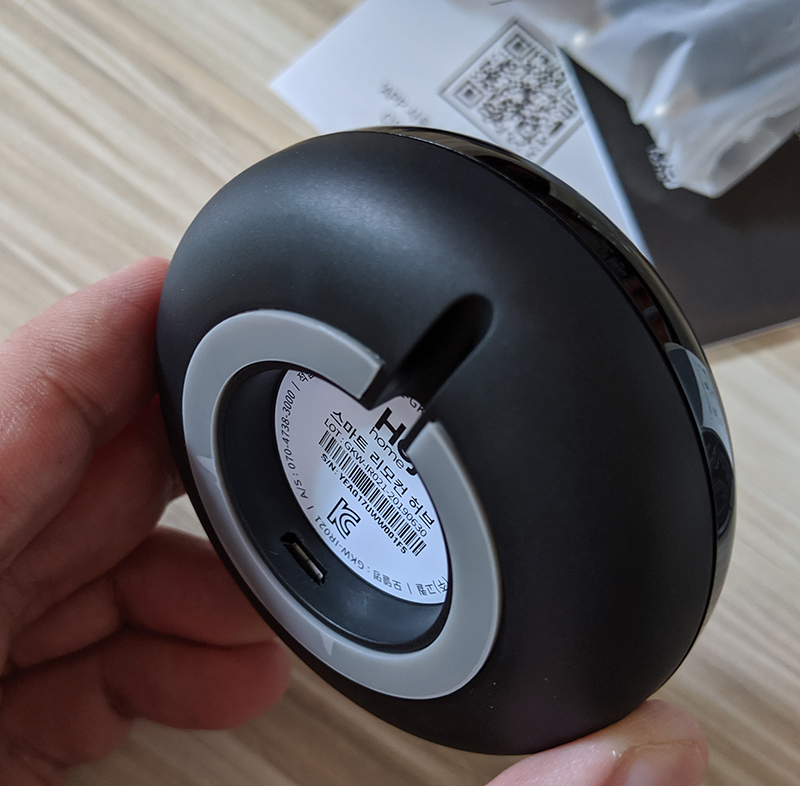 스마트 리모컨 허브를 개봉해보자. 박스는 작고, 전원, 케이블, 본체, 매뉴얼로 구성되어있다.