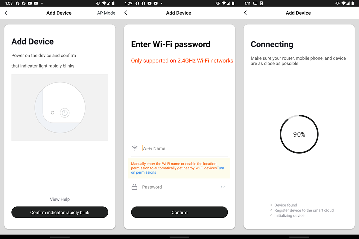 스마트폰에서 앱을 설치해야 초기 설정이 가능한데, 최초 사용자 등록과 Wi-Fi 등록을 필요로 한다.