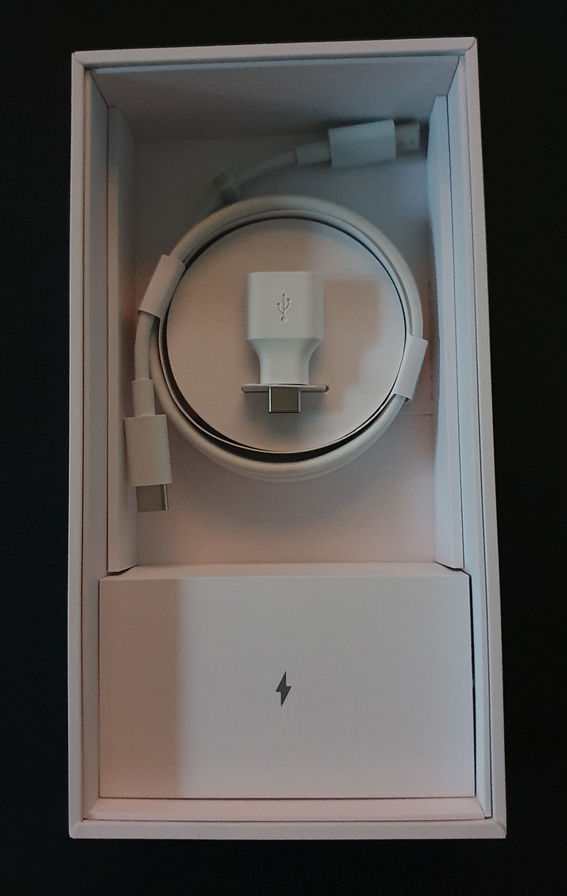 휴대폰을 꺼내면 추가 구성품을 볼 수 있다. 충전기와 유심 트레이를 뽑을 수 있는 핀과 매뉴얼 USB-C to C 케이블을 제공하고 있다. 구성품은 기존 픽셀들과 크게 다르지 않기에 여기까지...