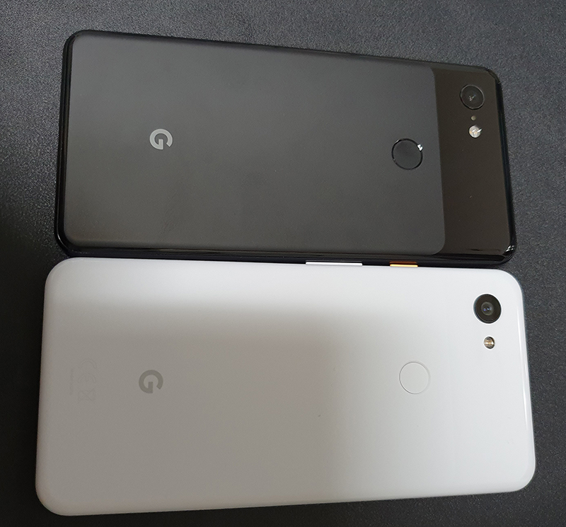 후면의 디자인은 큰 차이는 없다. 후면의 상단이 유리이냐 아니냐의 차이는 분명있다. 픽셀 3(상단)의 후면은 고릴라 글라스가 적용되어있는 상단 부분을 볼 수 있고, 픽셀 3a(하단)은 별도의 유리는 존재하지 않는다. 이것 외에는 모두 동일한 디자인을 가지고 있다.