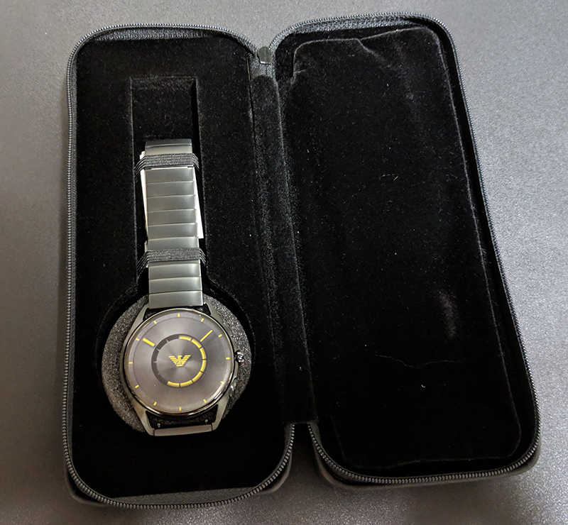 매우 짧게 사용한 아르마니 스마트워치이다. 국내 정식 구매해서 사용한 제품으로 1.3 GB의 용량을 제공한다. 하지만 OS 최적화 부재로 실제 시계로 활용하려면 아무것도 하지 않거나, 배터리를 하루에 2번 충전하면 쓸만하다.