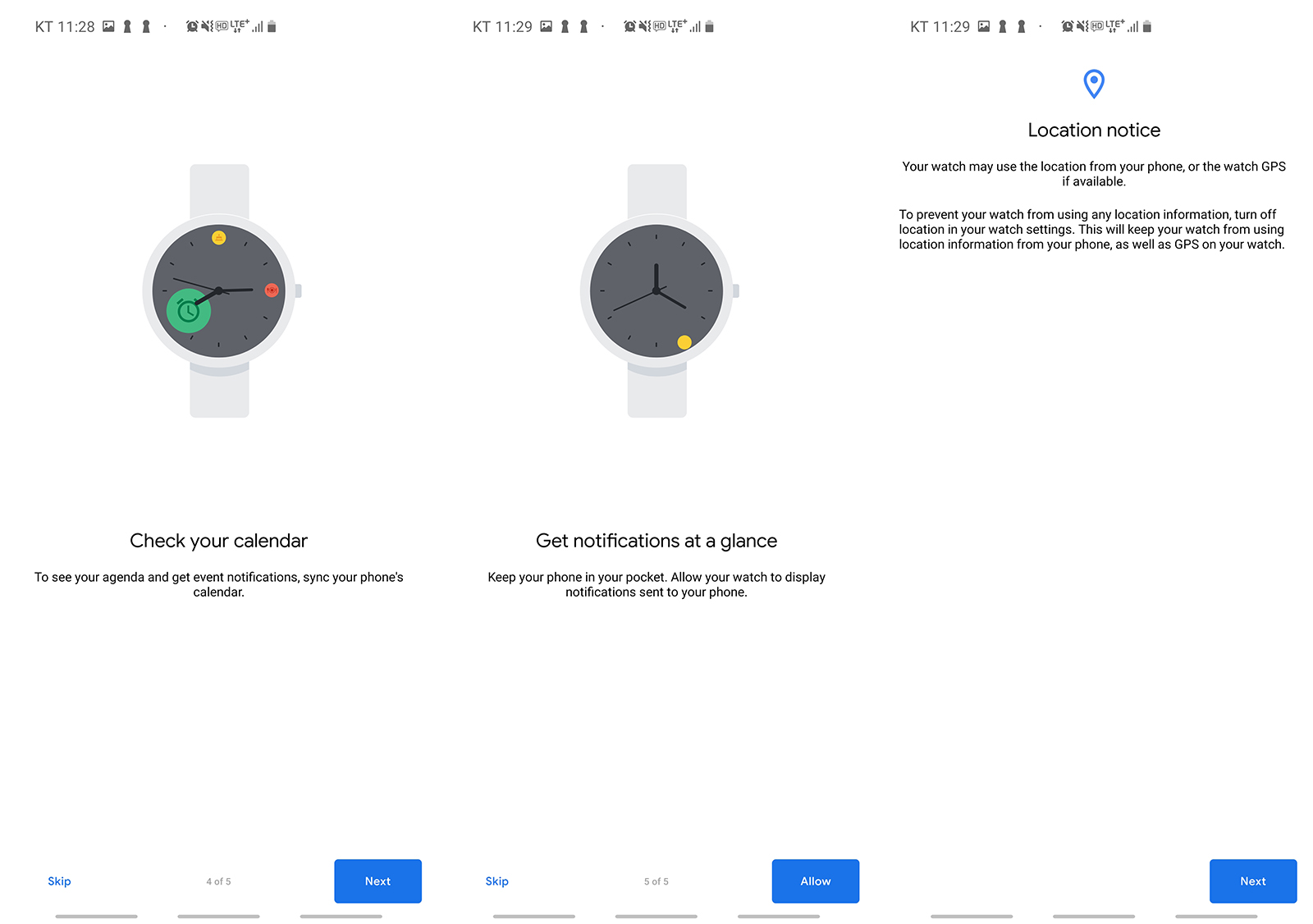 안드로이드 폰과의 페어링은 매우 간단하고, wear 앱 설치에서 진행한다.