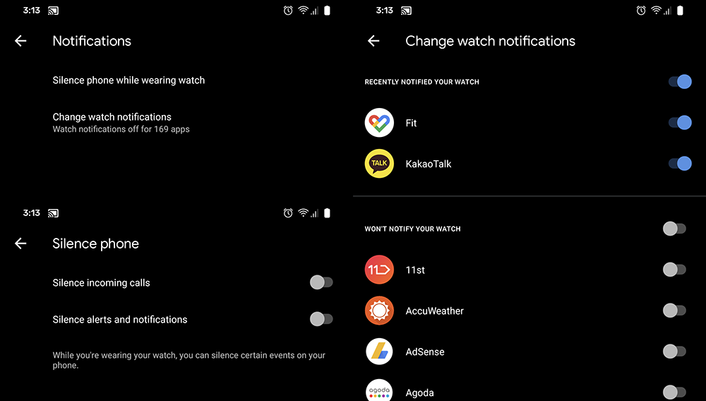 기본적으로 Google Fit 정보, 심박 측정 정보, 날씨, 다음 알림 등을 받을 수 있다.