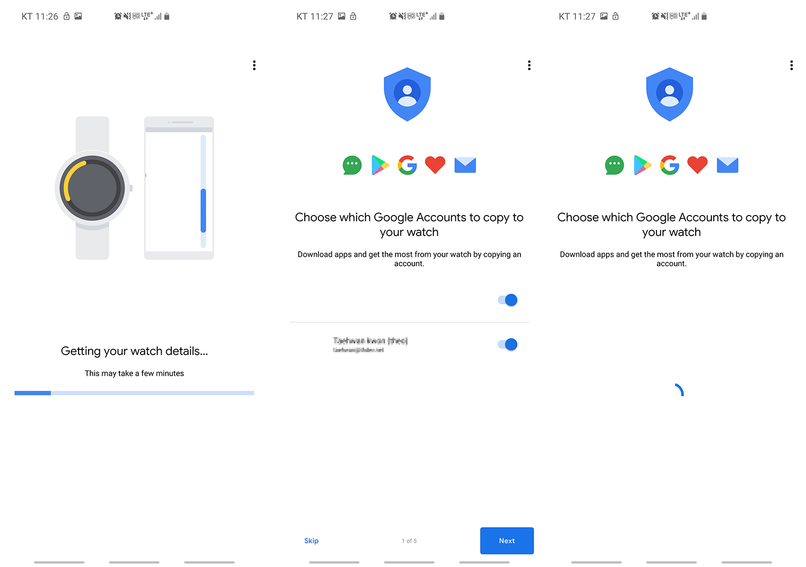 그리고 스마트워치에 동기화할 계정을 설정한다.