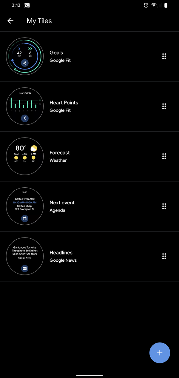 기본적으로 Google Fit 정보, 심박 측정 정보, 날씨, 다음 알림 등을 받을 수 있다.