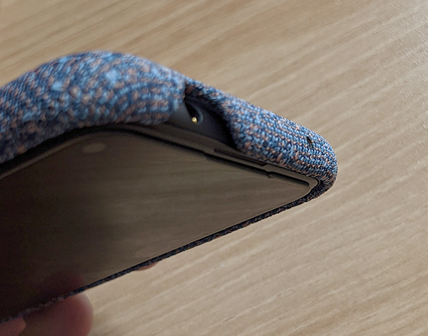 상단에는 이어폰 단자를 위한 케이스 공백이 생겼다.