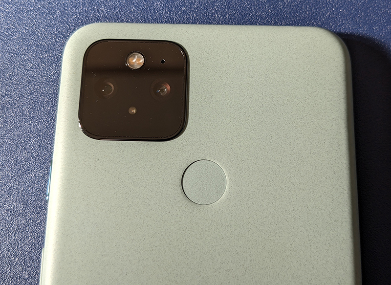 Pixel 4에는 전면 얼굴인식을 위한 카메라 2개, 메인 카메라, 모션 센서까지 있었다. 하지만 픽셀 5에서는 모두 삭제되었다.