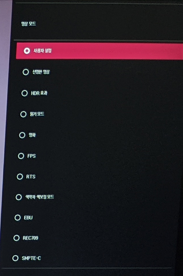 맥북이랑 쓰다 보니 색상이 잘 맞지 않아 사용자 설정으로 직접 조절해서 사용하고 있다.