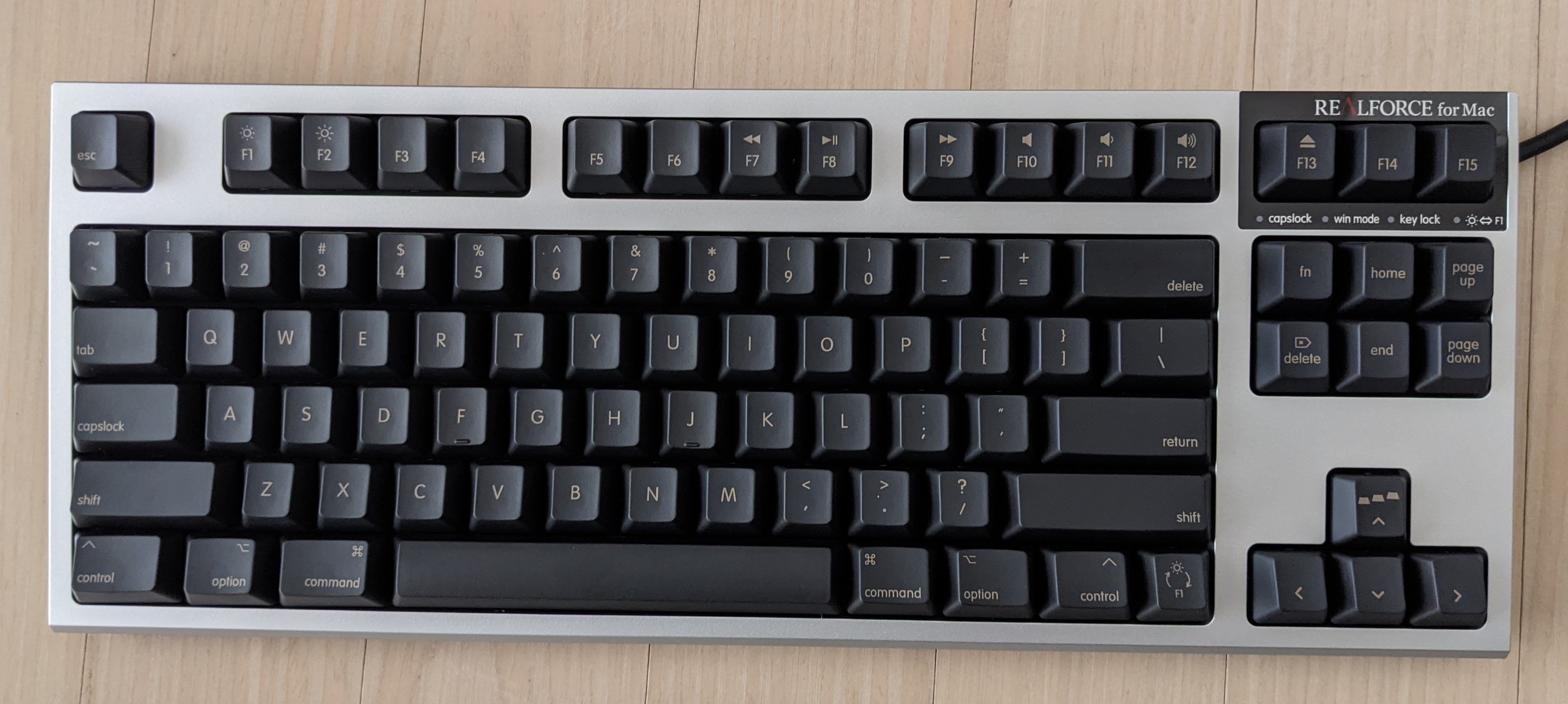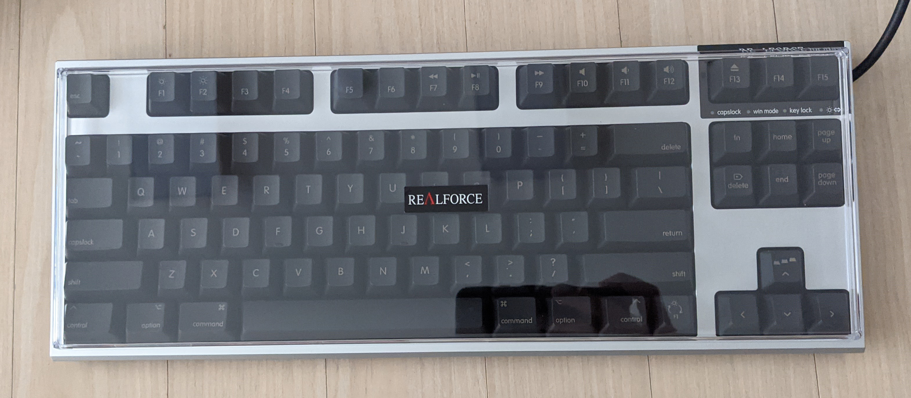 나머지 키 배열은 기존의 리얼포스와 동일하다. 하지만 command와 option 키의 크기를 보라.