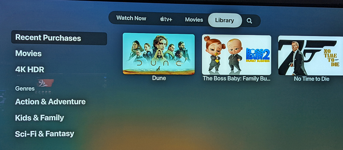 애플 TV는 4k, 돌비 비전 지원 영화들이 많은데, 이를 양쪽 모두에서 시청 가능하다.
