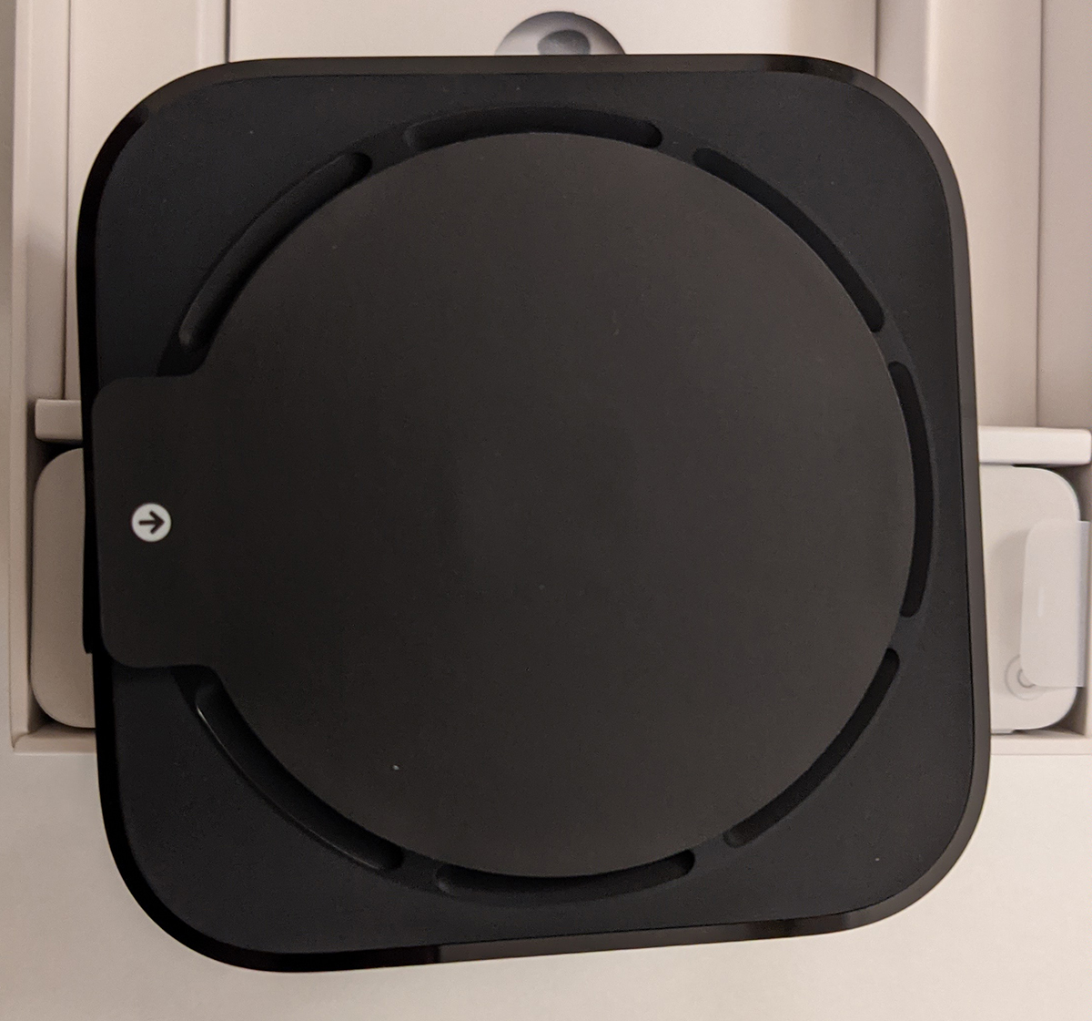 애플 TV는 생각보다 많이 크다. 작은 맥미니 디자인을 하고 있는데 생김새가 비슷하다.