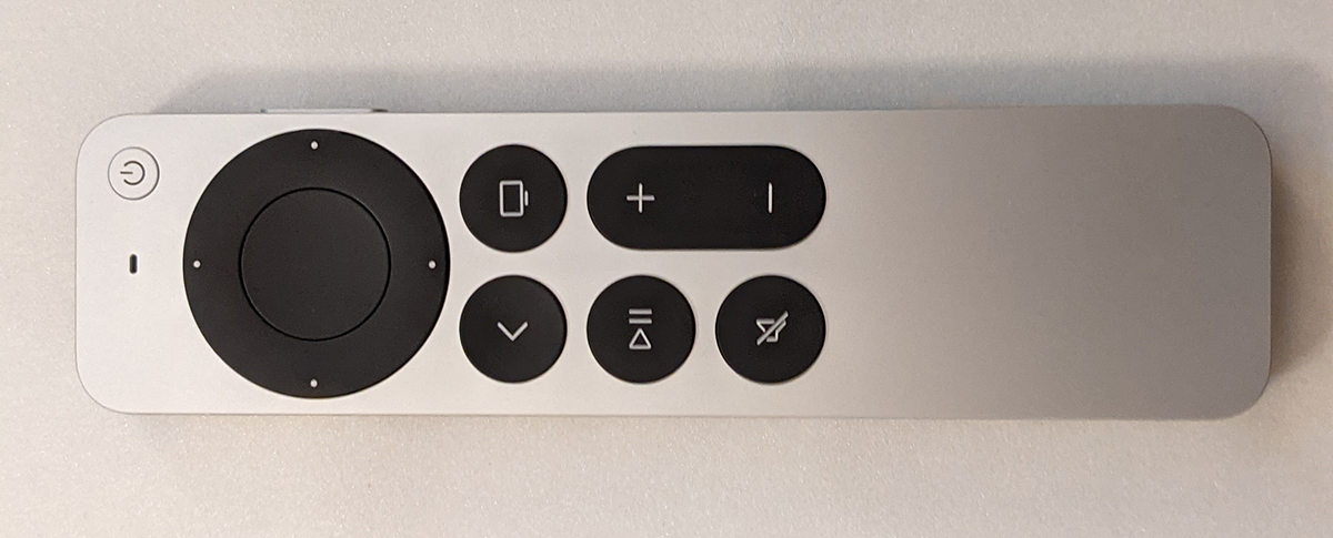리모컨은 알루미늄으로 구성되어있고, 상단에는 터치 형태를 지원한다. 쓸어서 좌우/위/아래 이동이 가능하다.