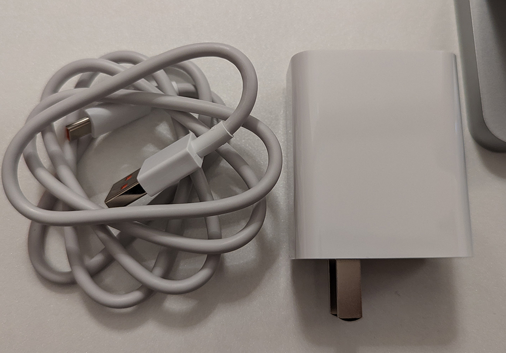 박스를 개봉하면 본체와 충전기, USB-C 타입 케이블이 하나 들어있다.