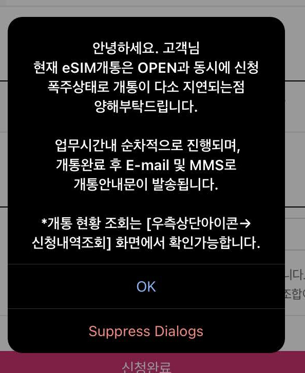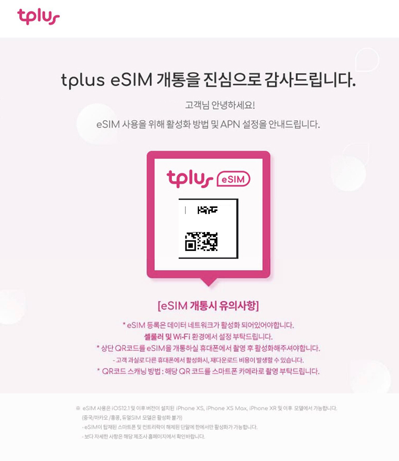 tplus eSIM 가입이 완료되었다.