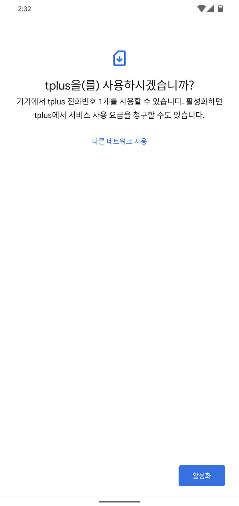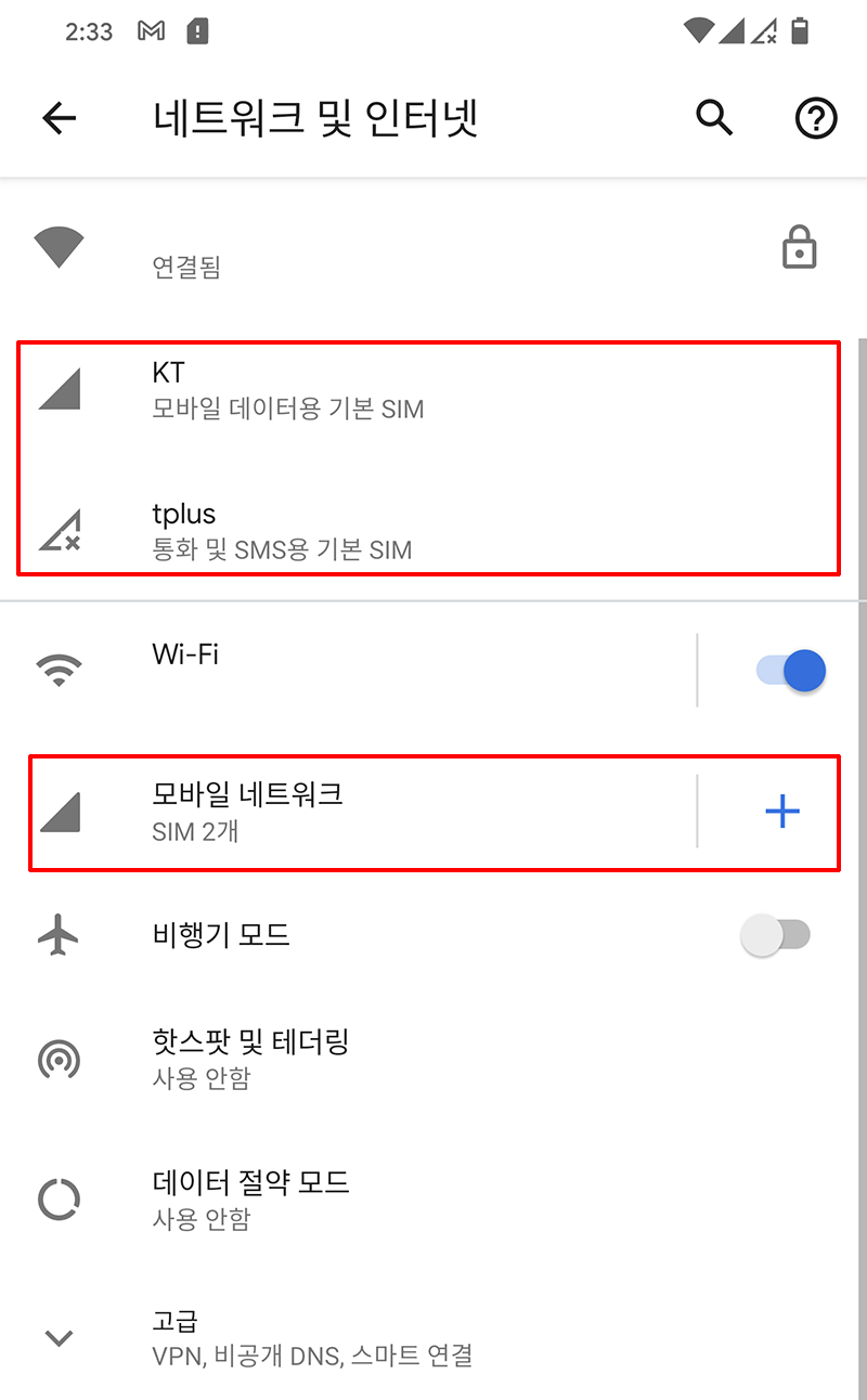 여기서는 KT는 데이터만 사용할 거고, tplus는 통화 및 SMS 용으로 활용할 것이다.