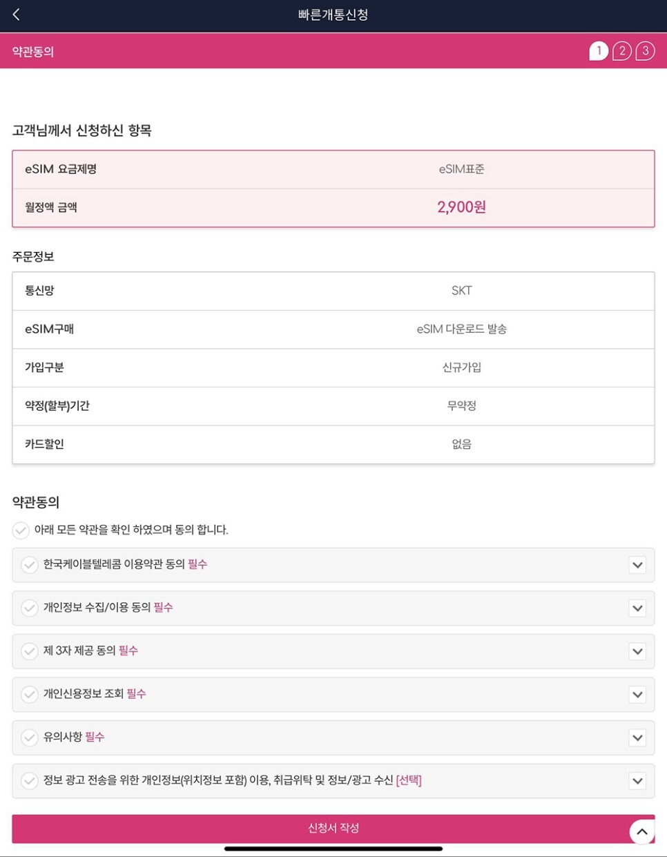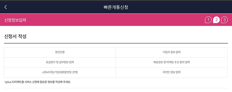가입 방법은 타 유심 가입과 크게 다르지 않다.