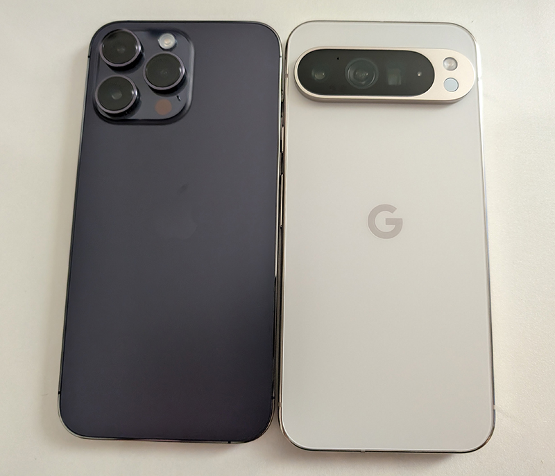 왼쪽이 iPhone 14 Pro Max, 오른쪽이 픽셀이다.